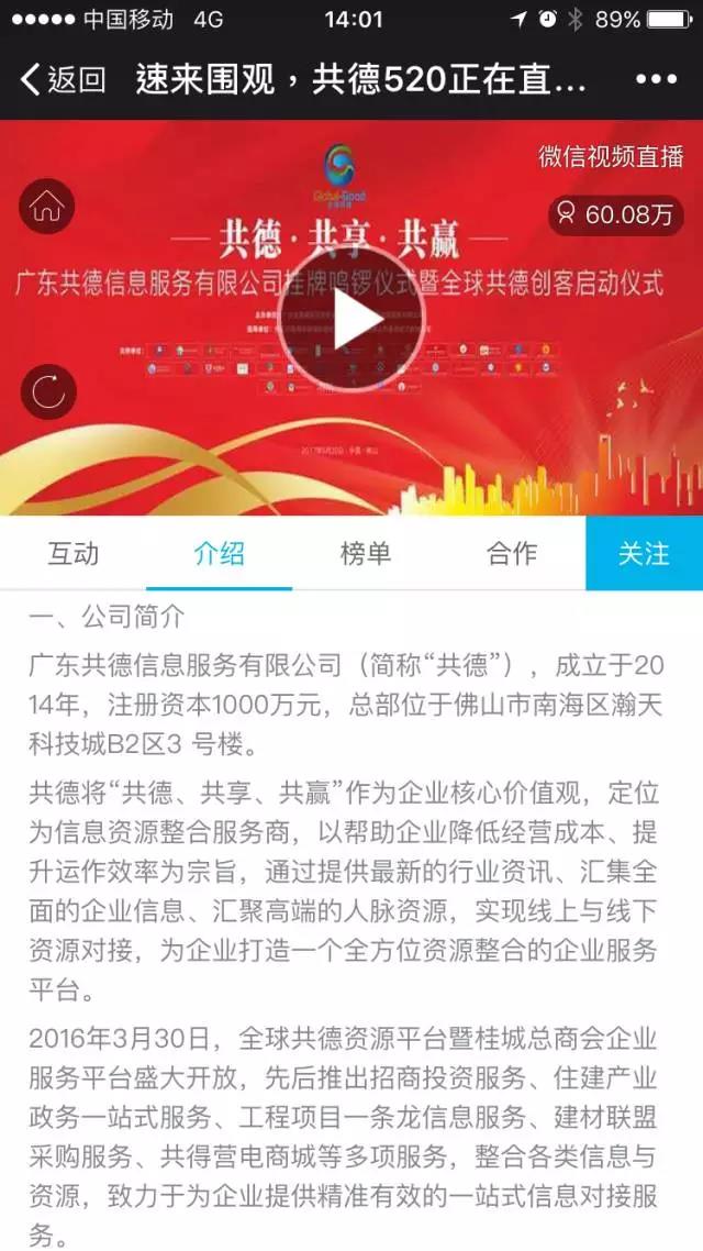直播超过60万浏览量,共德520挂牌又一次成为万众瞩目的焦点!